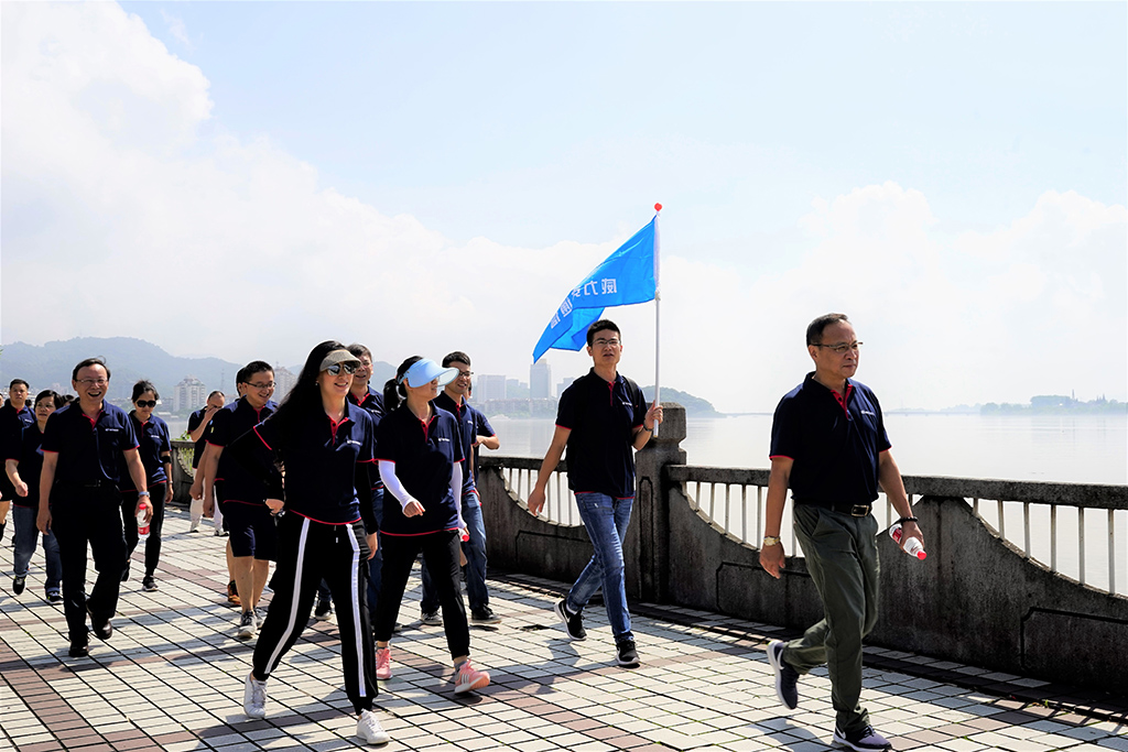 正式会议前,会务组精心组织了环富春江毅行的户外体能拉练活动。为了增加活动的竞争性,体现团结合作的精神,各与会代表分成四个小组进行团队比赛。美丽的富春江畔艳阳高照,大家成群结队、彼此鼓励、斗志昂扬地完成了10公里毅行路程,充分体现PG官网通信职工团队昂扬向上、锐意进取、勇于创新的精神。活动最后,由公司总经理李昊对表现突出的团体进行了颁奖。